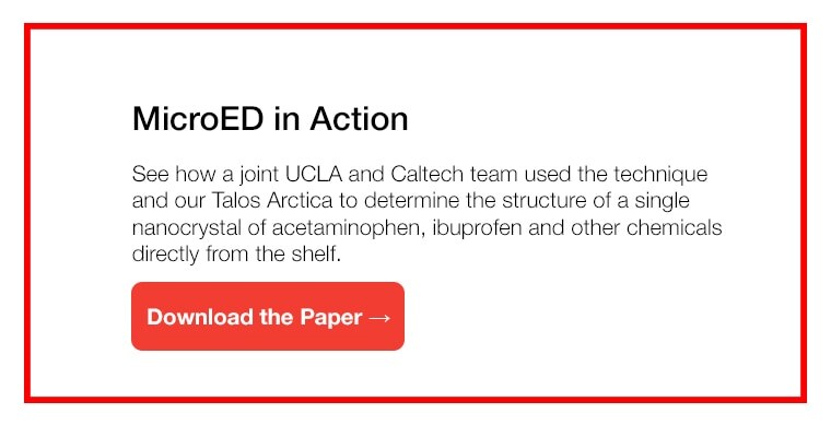 Today we unveiled the industry’s first integrated solution for performing micro electron diffraction (MicroED). For those who aren’t familiar, MicroED is an advanced electron microscopy technique that enables researchers to quickly resolve structures up to a billion times smaller than those needed using traditional methods.