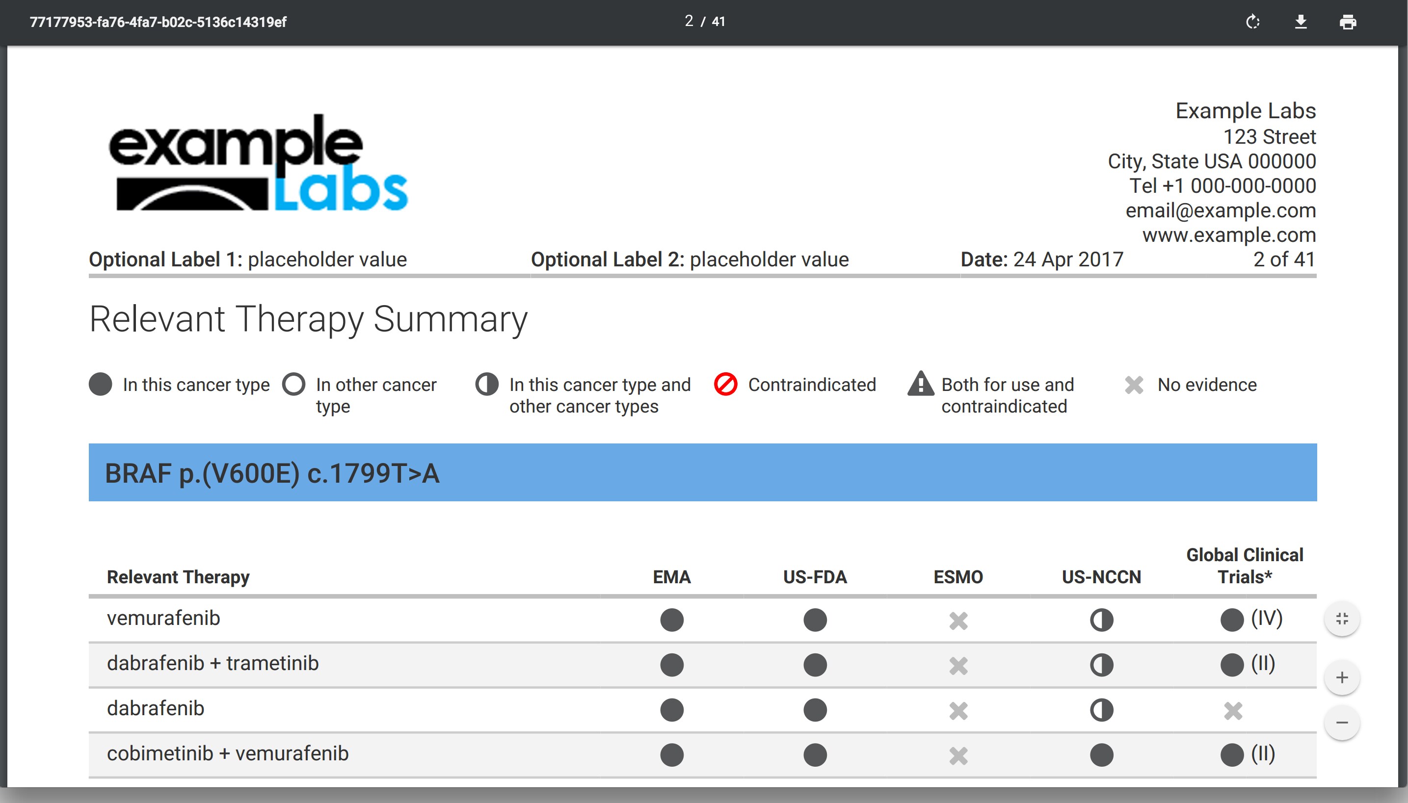 The Oncomine Knowledgebase Reporter (OKR) app on Thermo Fisher Connect allows cancer researchers, who are using next generation sequencing data, the ability to interrogate sample-specific variants and to understand their use in on-market oncology drugs, published evidence, and current global clinical trials.