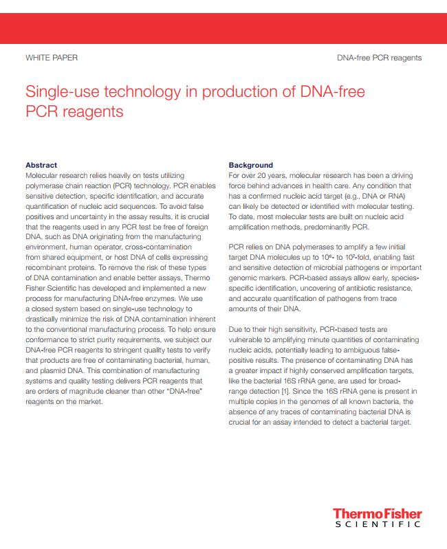 For more information about single-use system manufacturing of DNA-free PCR enzymes, download the white paper.
