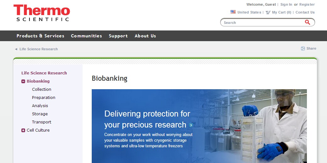Protecting the integrity of samples is essential to the success of every biobanking project. So is the ability to easily share information designed to accelerate lifesaving discoveries. Thermo Scientific solutions offer the most diverse, cutting-edge portfolio of biobanking products and services designed to help you do both. Our sample collection, preparation and automation equipment, cold storage, wireless monitoring, consumables, reagents and biobanking services give you the power to secure and preserve your samples, track your inventory, streamline productivity, and meet your toughest laboratory challenges. At the same time, Thermo Scientific informatics solutions enable you to share insights and information critical to advancing science. And discovering the next big idea.