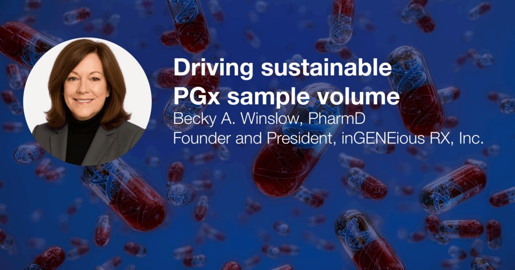 In the ever-evolving landscape of clinical pharmacogenomics, driving sustainable PGx sample volume is both challenging and rewarding. Dr. Becky Winslow, founder and principal at inGENEious RX Inc. and a leading expert in the field, recently shared her insights in a webinar that delved into the intricacies of this topic to explore: what are effective strategies to increase pharmacogenomics (PGx) sample volume in clinical settings?