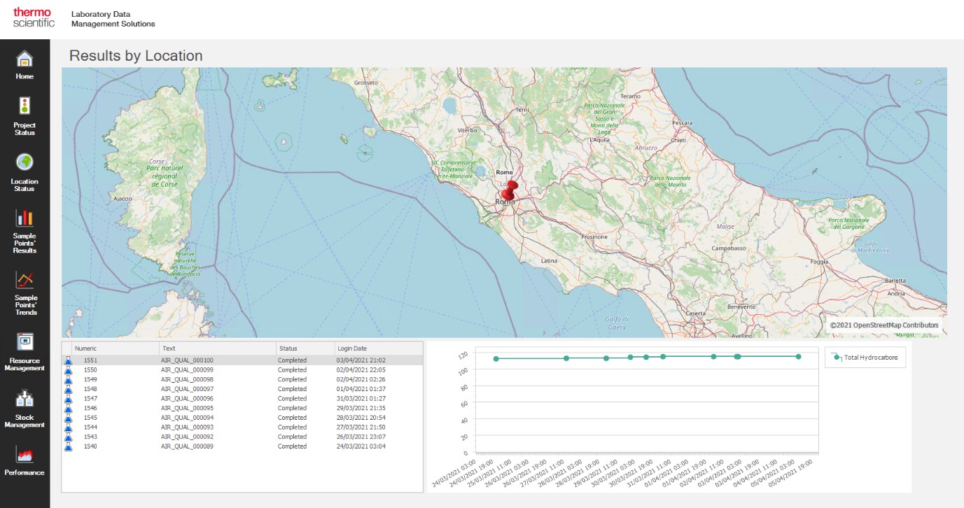 Location Views in the Data Analytics Solution show a comprehensive picture of field- or lab-based sampling points, storage facilities or other locations in your organization. The dashboard can display locations on a map or on a floorplan of the facility to enable: