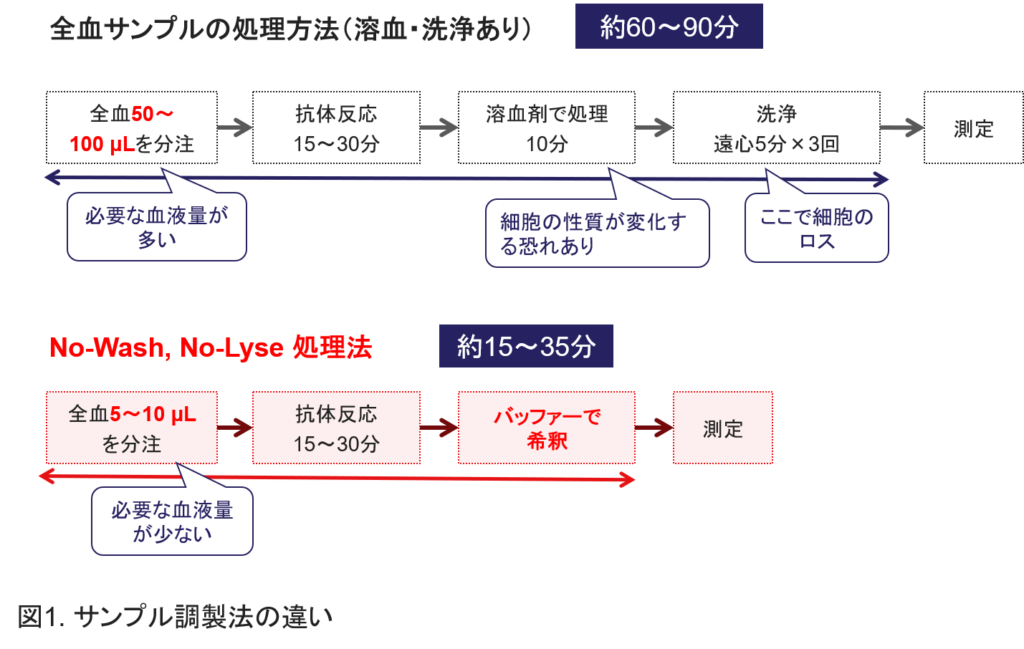 そこで今回は、血液を溶血も洗浄もせず簡単に血液を測定する方法(No-Wash,No-Lyse法)についてご説明いたします。