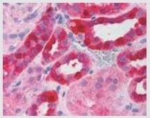 Rictorに対する抗体を使用し、パラフィン包埋したヒト腎臓の免疫組織化学分析。
