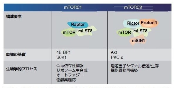 図3.11. タンパク質RaptorおよびRictorは、それぞれ複合体mTORC1およびmTORC2のコアコンポーネントで、mTORシグナル伝達に不可欠です。