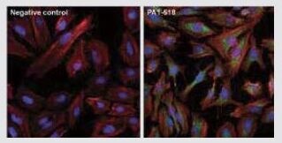![]() | PIK3R1 Mouse Monoclonal Antibody (6G10) 抗PIK3R1抗体 (緑色) (製品番号 MA1-74183) で染色した、HeLa (不死化ヒト子宮頸がん) 細胞の免疫蛍光分析。核はDRAQ5™ Dye (青色)、アクチンフィラメントは蛍光ファロイジンコンジュゲート (赤色) で染色。 |