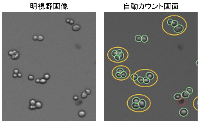 - Invitrogen™ Countess™ 3 FL 自動セルカウンター(製品番号 AMQAF2000)の明視野モードで細胞濃度、生細胞率、死細胞率、凝集率を測定