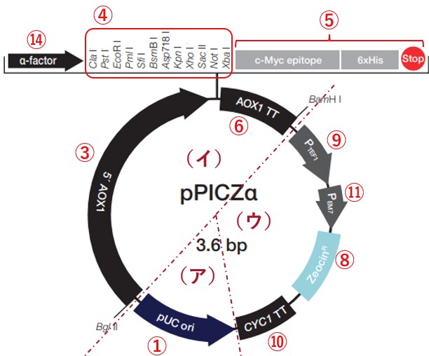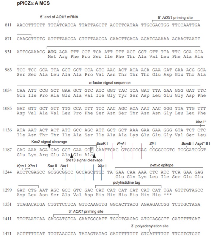 マップからどのように扱うかを読み取れますが、全くPichia発現系についてご存じない場合はお手数ですがマニュアルをご確認ください。また、不明点あれば当社テクニカルサポートをご利用ください。
