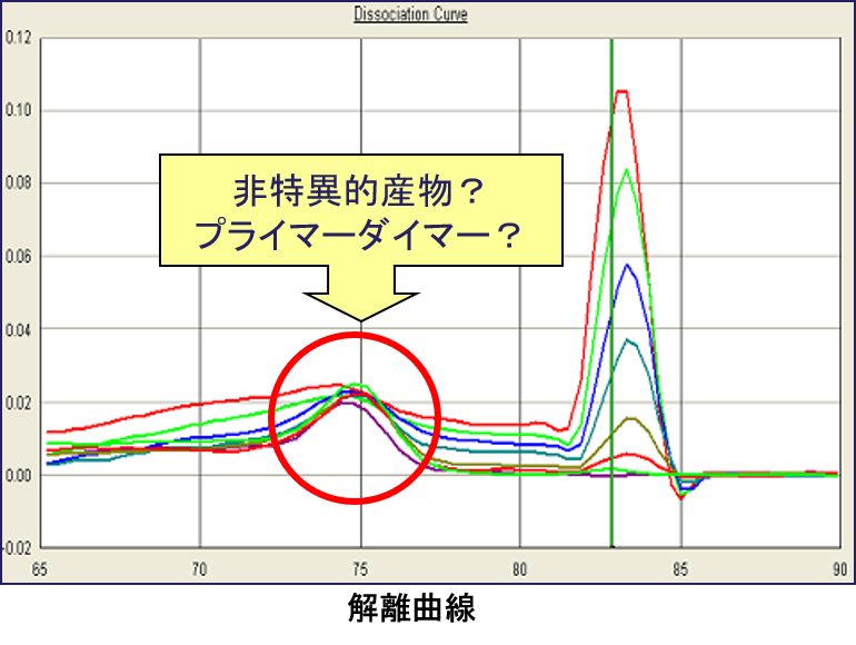 SYBR Greenの反応系の場合は「非特異的な反応が起きていないか?」を確認する必要があります。