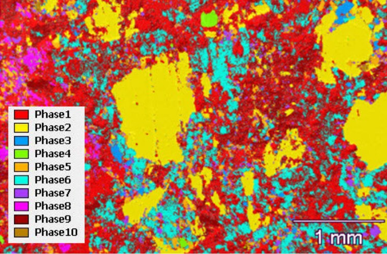 We decided to look into this ourselves with a highly useful algorithm in energy dispersive spectroscopy (EDS) on a scanning electron microscope (SEM). The software feature, called COMPASS, runs a principal component statistical analysis on the EDS spectra generated in the SEM. While most EDS systems separate the constituent parts by elements, COMPASS software pulls discrete “phases” from its EDS data. Now we can look at materials not as a disorganized grouping of elements commonly found in EDS, but as the individual components of oxides, sulfates and element-rich phases in order to better characterize complex materials.