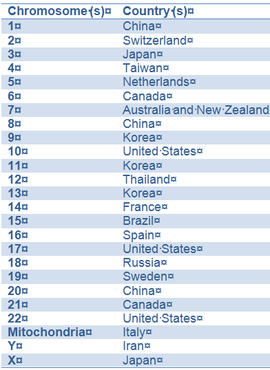 The Chromosome-Centric Human Proteome Project (C-HPP) was proposed by Young-Ki Paik1 and colleagues at several HUPO meetings from 2008 to 2011, the year the group officially formed. The essential idea behind the C-HPP is to organize emerging proteomic information by chromosome and gene. A 25-member international consortium will map and annotate the entire protein set coded by each human chromosome. Responsibility for maintaining the information for each of the 24 chromosomes has been assigned to different countries.2 The table below shows which country has claimed which chromosomes.