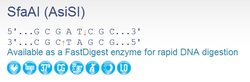 Thermo Scientific SfaAI (AsiSI) restriction enzyme recognizes GCGAT^CGC sites and cuts best at 37°C in Tango buffer. See