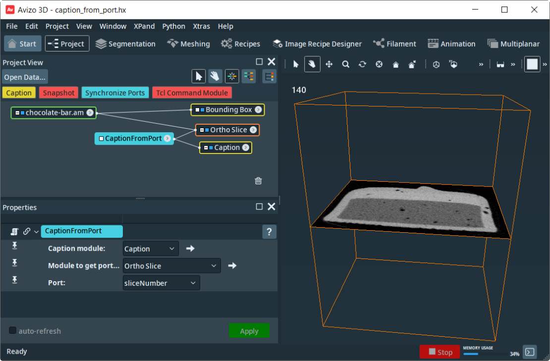 If the port's value is changed, e.g. the slice-number of an OrthoSlice, the Caption is automatically updated.