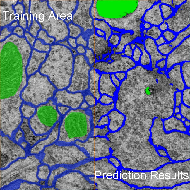 The downloadable content is meant to help you, through an example, get started with the Deep Learning Training and Prediction modules. The content helps you learn to segment membranes and mitochondria in Transmission Electron Microscopy images of the Drosophila first instar larva ventral nerve cord.