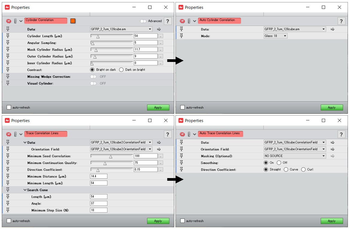 To make use of XFiber, the user usually needs to input many parameters. This package provides 2 tools to ease Xfiber process by presetting Cylinder Correlation and Auto Trace Correlation modules values.